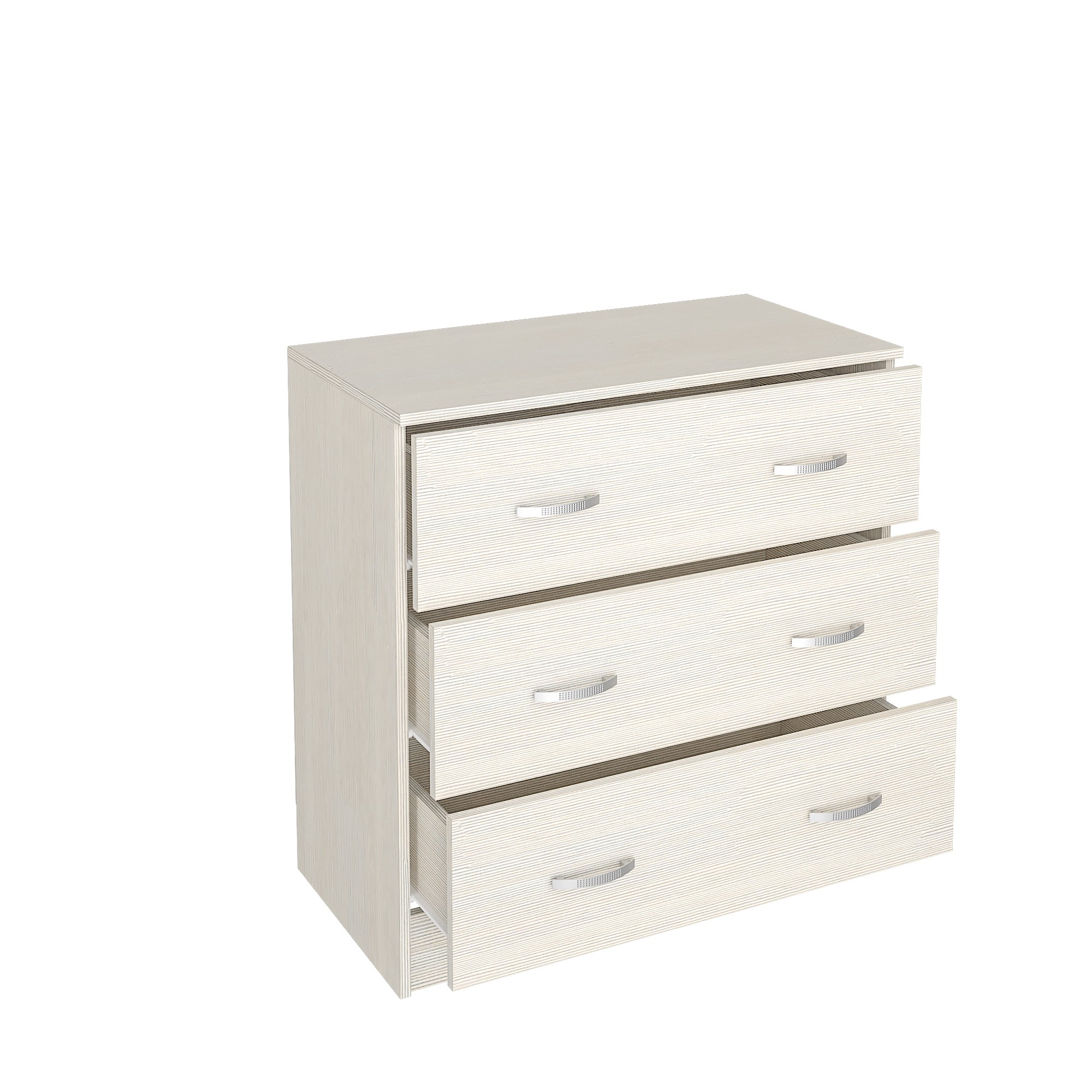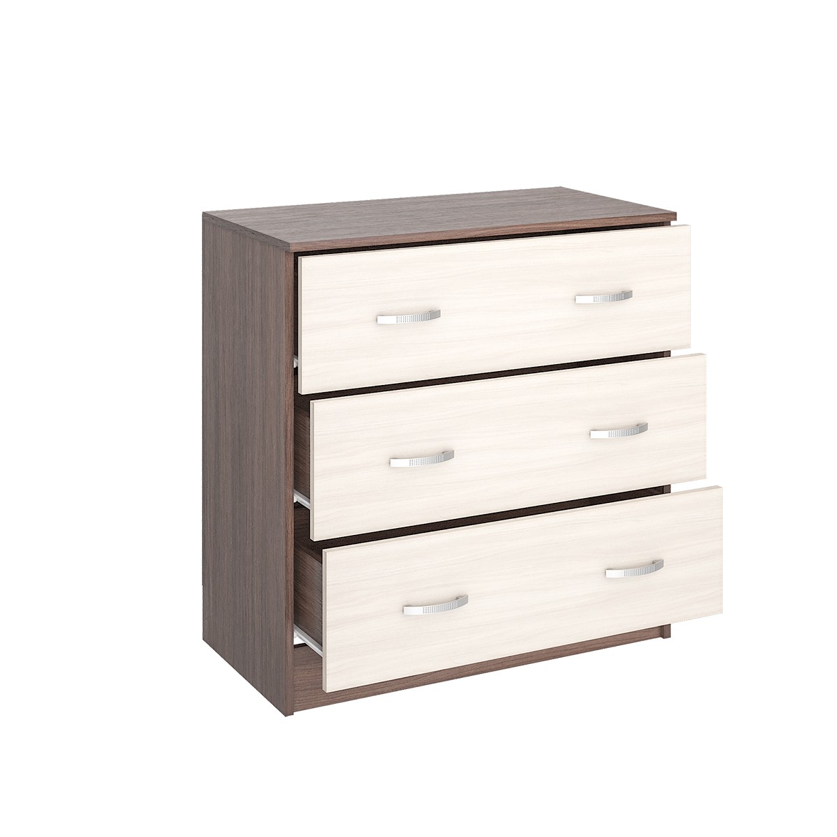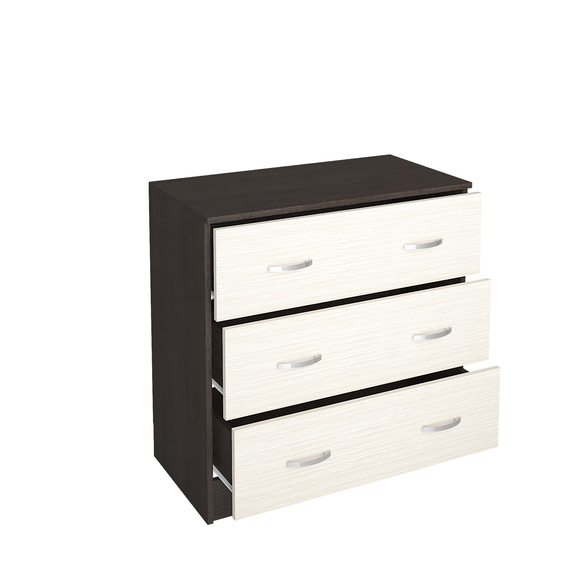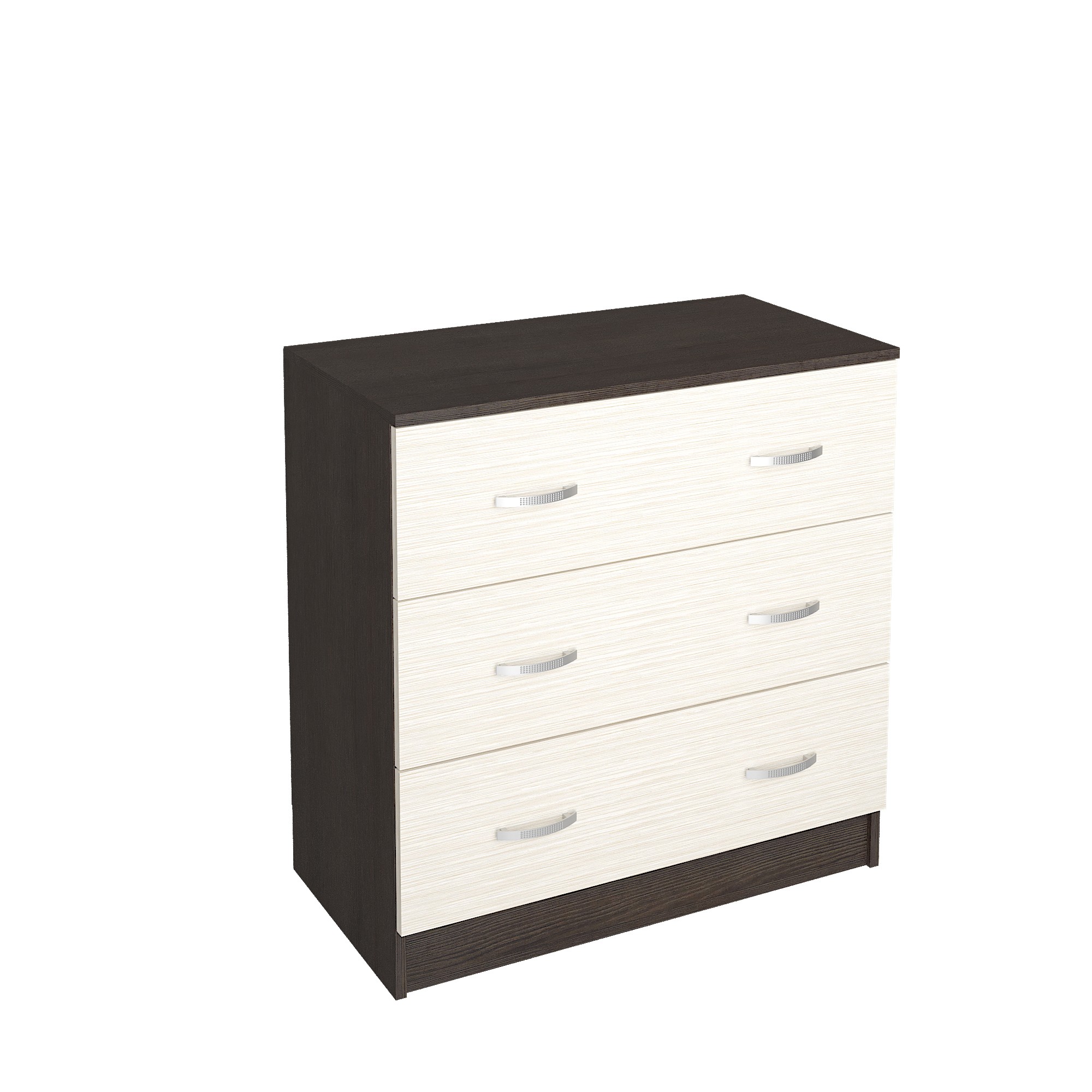 Комод подойдет даже для небольшой спальни, при этом три объемных ящика вместят белье и другие предметы гардероба